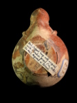 In reality this lamp contains the corroded remains of a wick pin. Sometimes a pin was inserted into the wick through the filling hole, to hold the wick in place. The pin would prevent the wick from sliding down into the body of the lamp and also served to adjust the wick as it was consumed. Such pins were made from rigid materials like metal, wood or bone.