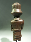 Although only the upper part of the figure is shown, approximately from the mid-thigh region upwards, it is likely that the lower part was not lost but never existed; the object appears to have been the handle of a dagger or a sword, and as such only the upper part of the body could be used to insert the tang of a weapon.