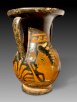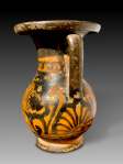 The decoration is reminiscent of that on Campanian vases. As remarked in a document accompanying the object, the pelike was thought to fit into the Libation Group and Head Vases, cf. Bulletin of the Institute of Classical Studies, Volume 30, Issue 541. Special Issue, Institute of Classical Studies, Bulletin Supplement No. 41: The RedāFigured Vases of Lucania, Campania and Sicily (1983). However, the document also states that this pelike is not Campanian but Apulian, referring to Arthur Dale Trendall - Alexander Cambitoglou, The Red-Figured Vases of Apulia (Oxford Monographs on Classical Archaeology) (Oxford, Clarendon Press; New York and Oxford, Oxford University Press, 1978-1982), Vol. II, p. 694-699, and mentioning similar heads illustrated on p. 259.