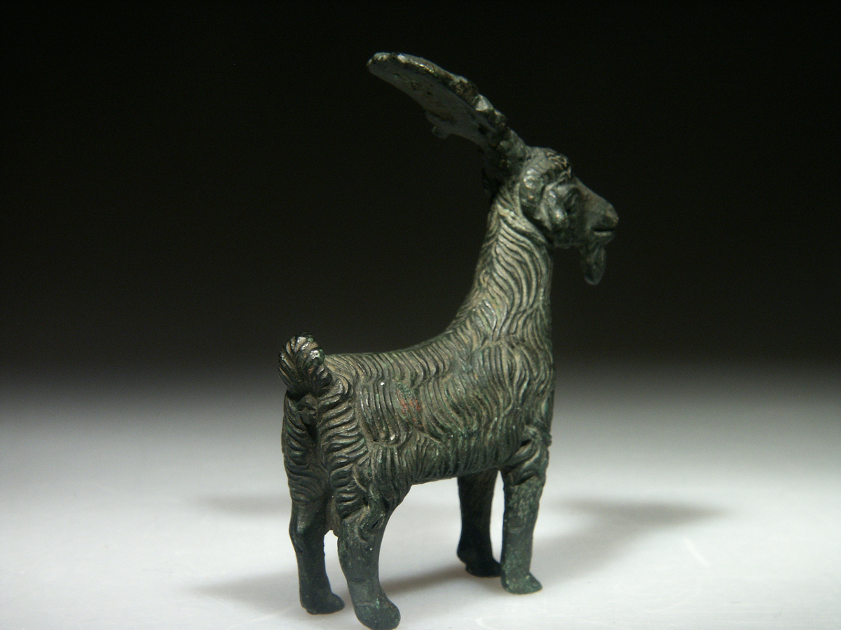 The subject of this statuette is clearly Egyptian but, in the words of Kozloff (1981), the naturalistic movement is singularly Roman. The even patterning of the animal’s coarse hair suggests a provincial provenance. It is possible that the bronze was made by a Roman artist in Egypt, but it is more likely that the cult of the god was carried to a distant part of the empire and influenced the creation of this bronze.