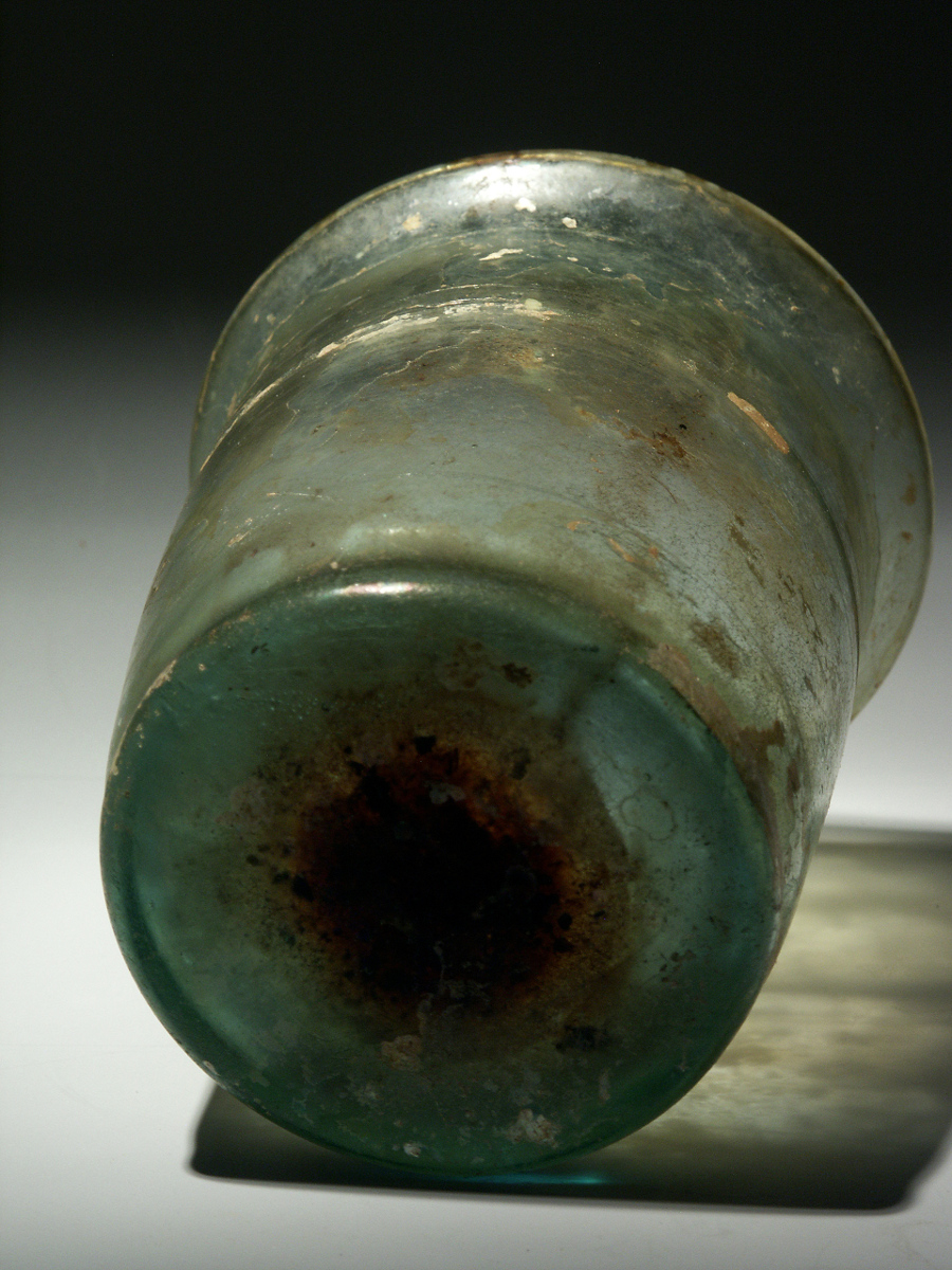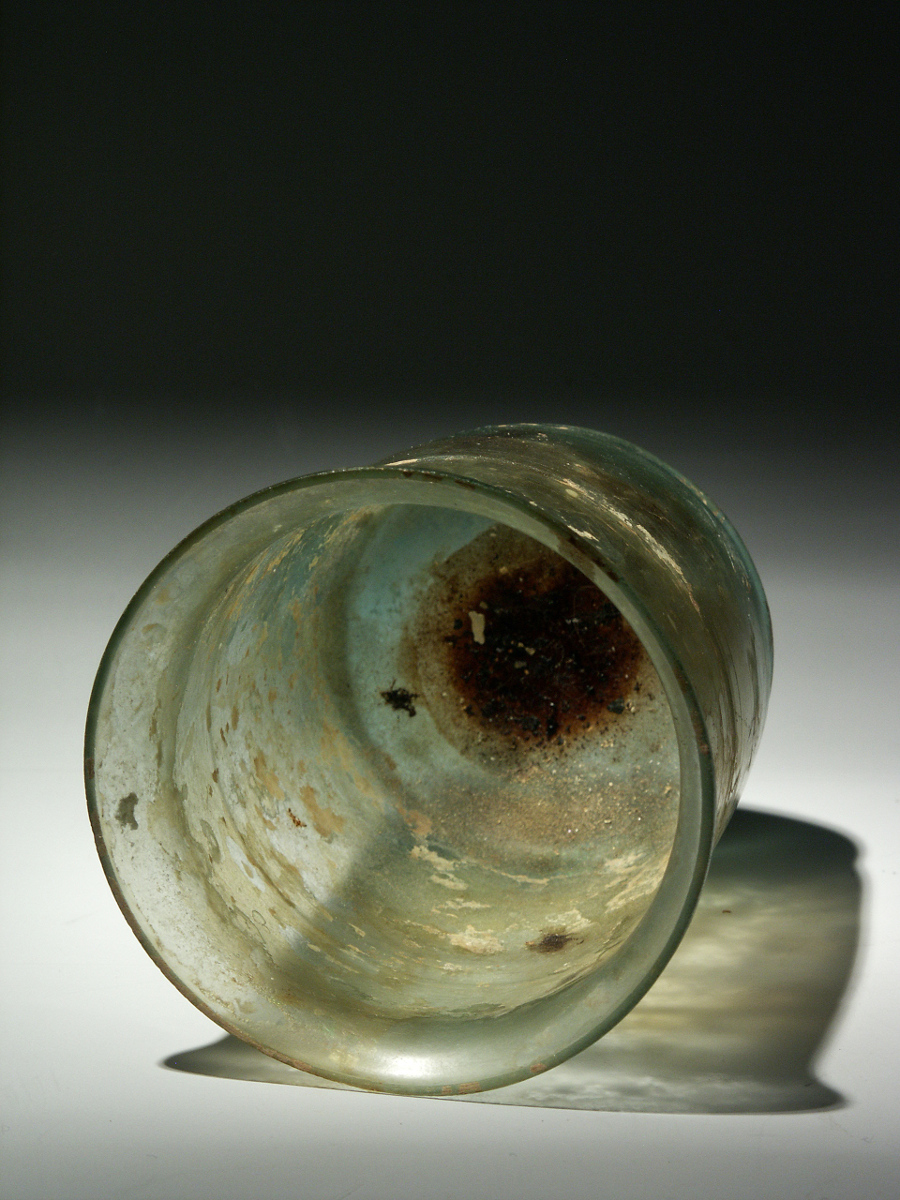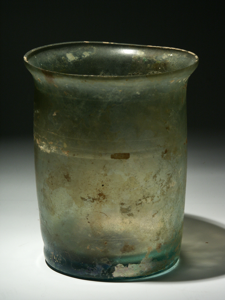 This is a beautiful tumbler, made of yellow green glass, circa 3rd - 4th century CE.